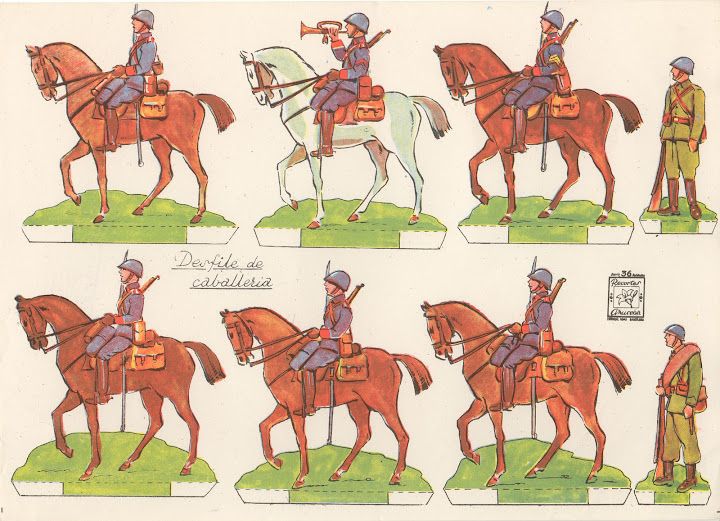 >Juguetes antiguos. Recortable de un desfile de caballeria. Imprime gratis el Recortable Antiguo